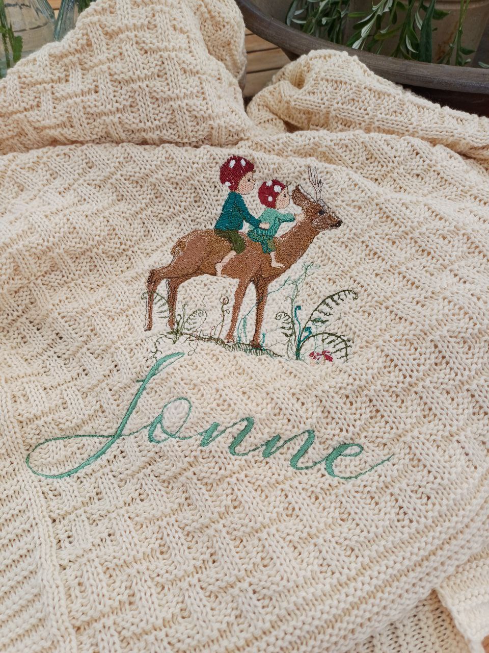 Natur Kinder-Strickdecke bestickt mit den süßen Kindern Namen und Daten
